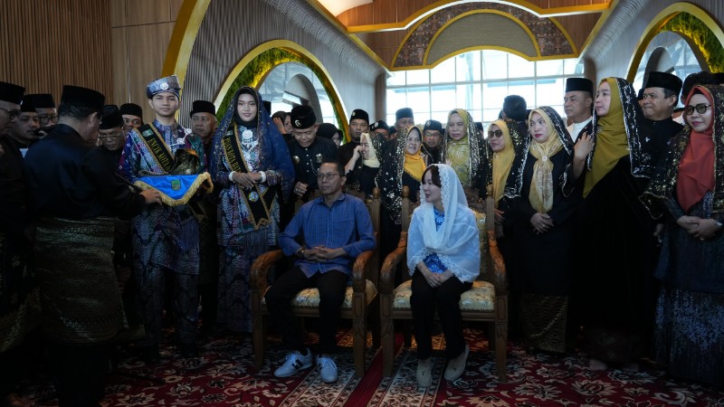 Wali Kota Batam sekaligus Kepala BP Batam, Amsakar Achmad dan Wakil Wali Kota Batam sekaligus Wakil Kepala BP Batam, Li Claudia Candra tiba di Batam, Sabtu (1/3/2025) sekitar pukul 11.30 WIB dan disambut adat Melayu.
