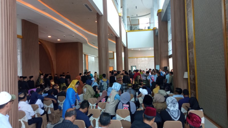 Suasana di Gedung VVIP Bandara Internasional Hang Nadim Batam dalam menyambut kedatangan Wali Kota Batam, Amsakar Achmad dan Wakil Wali Kota Batam, Li Claudia Candra, Sabtu (1/3/2025) siang.
