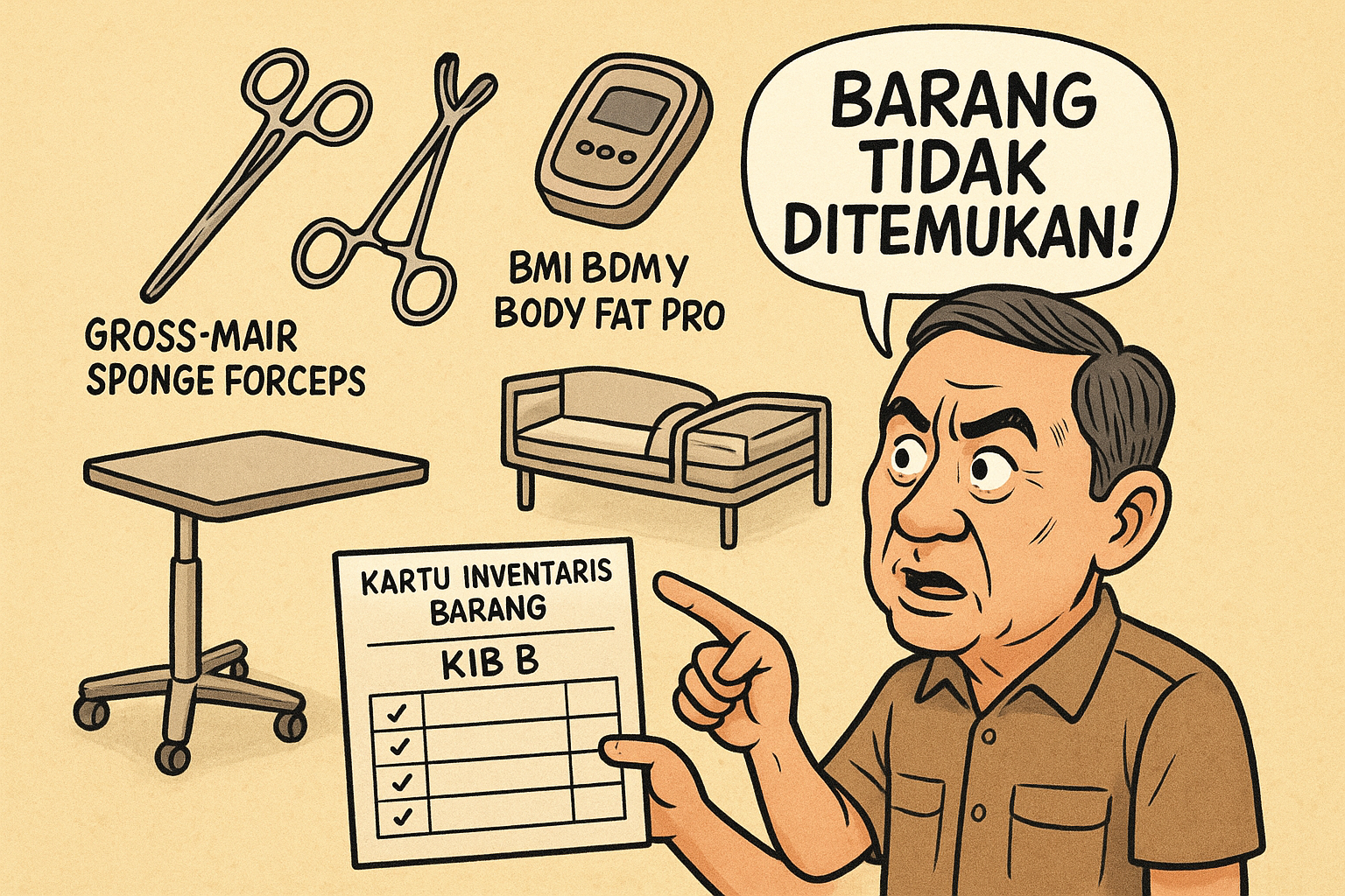 Ilustrasi sejumlah barang inventaris berupa alat kesehatan dan perlengkapan Puskesmas yang tidak dapat ditunjukkan saat pemeriksaan. Badan Pemeriksa Keuangan (BPK) mencatat temuan ini dalam hasil audit aset milik Pemerintah Kabupaten Natuna.
