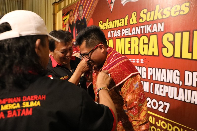 Kepengurusan Dewan Pimpinan Cabang Pemuda Merga Silima (PMS) Kota Batam resmi dilantik dan dikukuhkan di Aula Pacifik Hotel Batam, Minggu (30/4/2023).