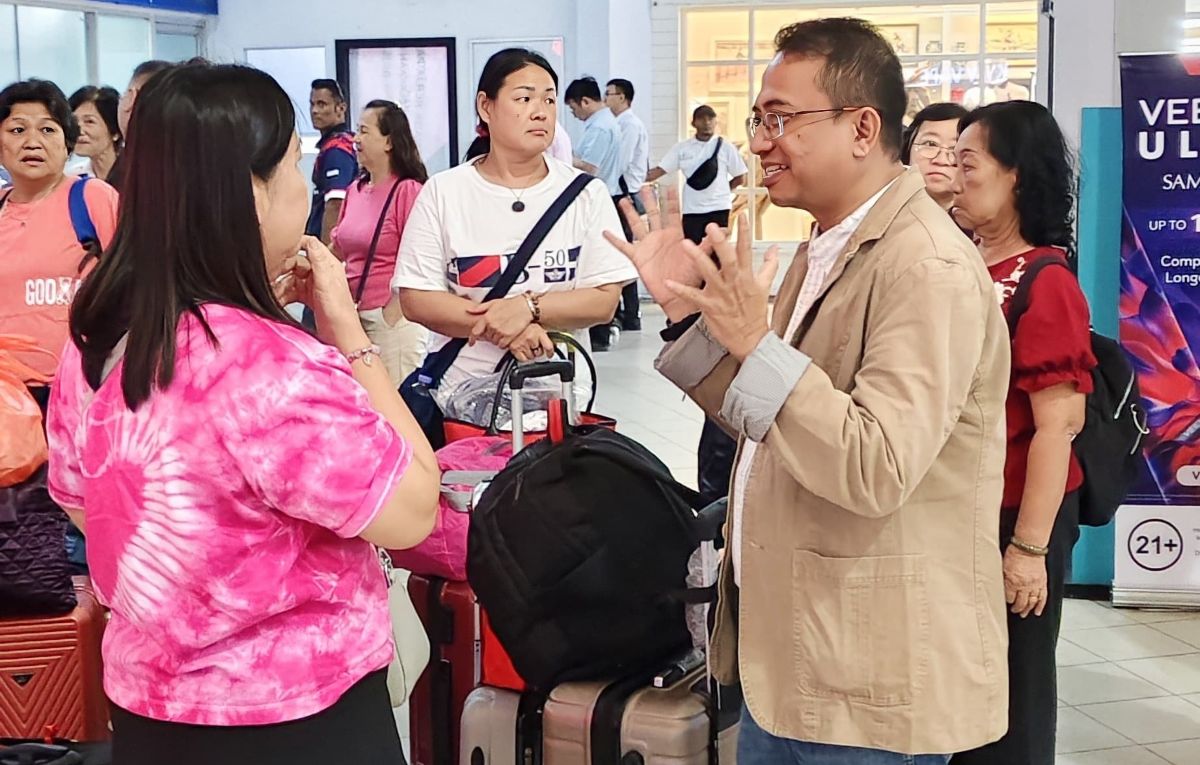 Ketua Himpunan Praktisi Tour Leader Indonesia (HIPTI) Kepri, Surya Wijaya saat memandu wisatawan Indonesia ke Malaysia, beberapa waktu lalu.