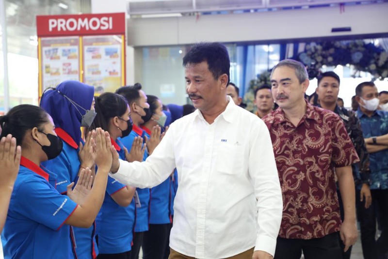 Kedatangan Kepala BP. Batam, Muhammmad Rudi disambut oleh karyawan Indogrosir Batam.
