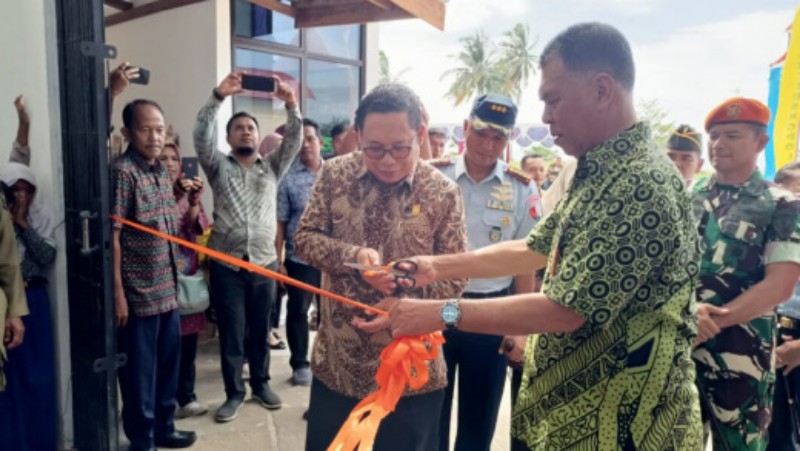 Ketua DPRD Natuna, Daeng Amhar bersama Bupati Natuna, Wan Siswandi memotong pita tanda diresmikannya Pasar Rakyat Ranai.