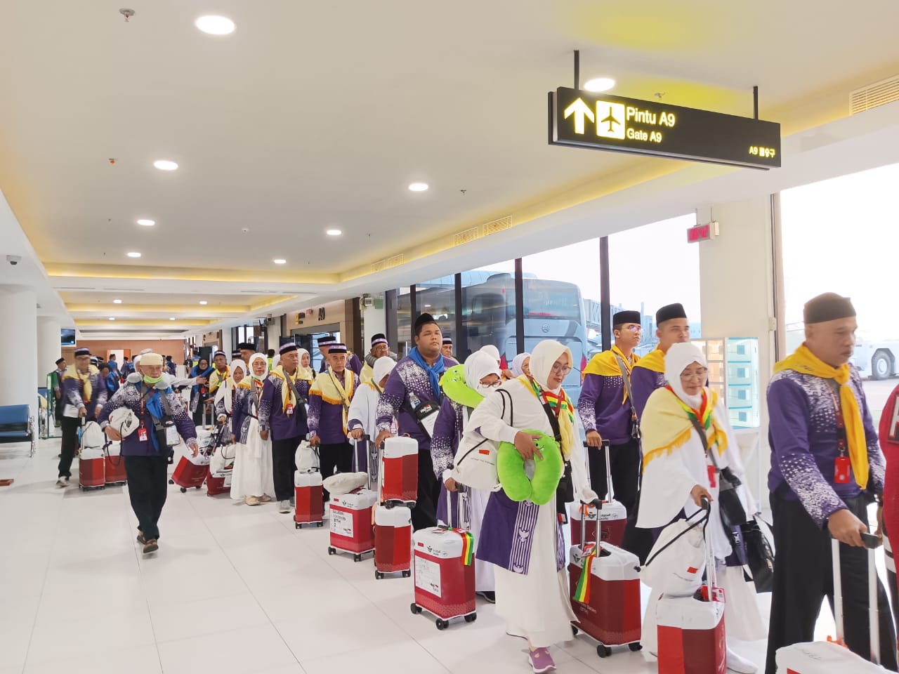 Sebanyak 445 jemaah calon haji (JCH) Kelompok Terbang (Kloter) pertama Jemaah Calon Haji (JCH) Embarkasi Batam diberangkatkan dari Bandara Internasional Hang Nadim Batam menuju Madinah, Jumat (2/5/2025) lalu.