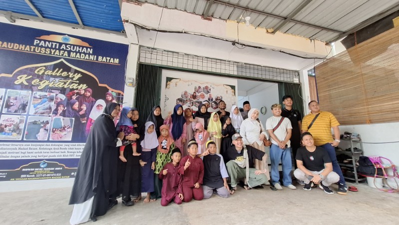 Kai Emilio bersama anak-anak Panti Asuhan Rhaudatussyafa Madani, Patam, Sekupang, Batam, Senin (4/8/2025) siang.