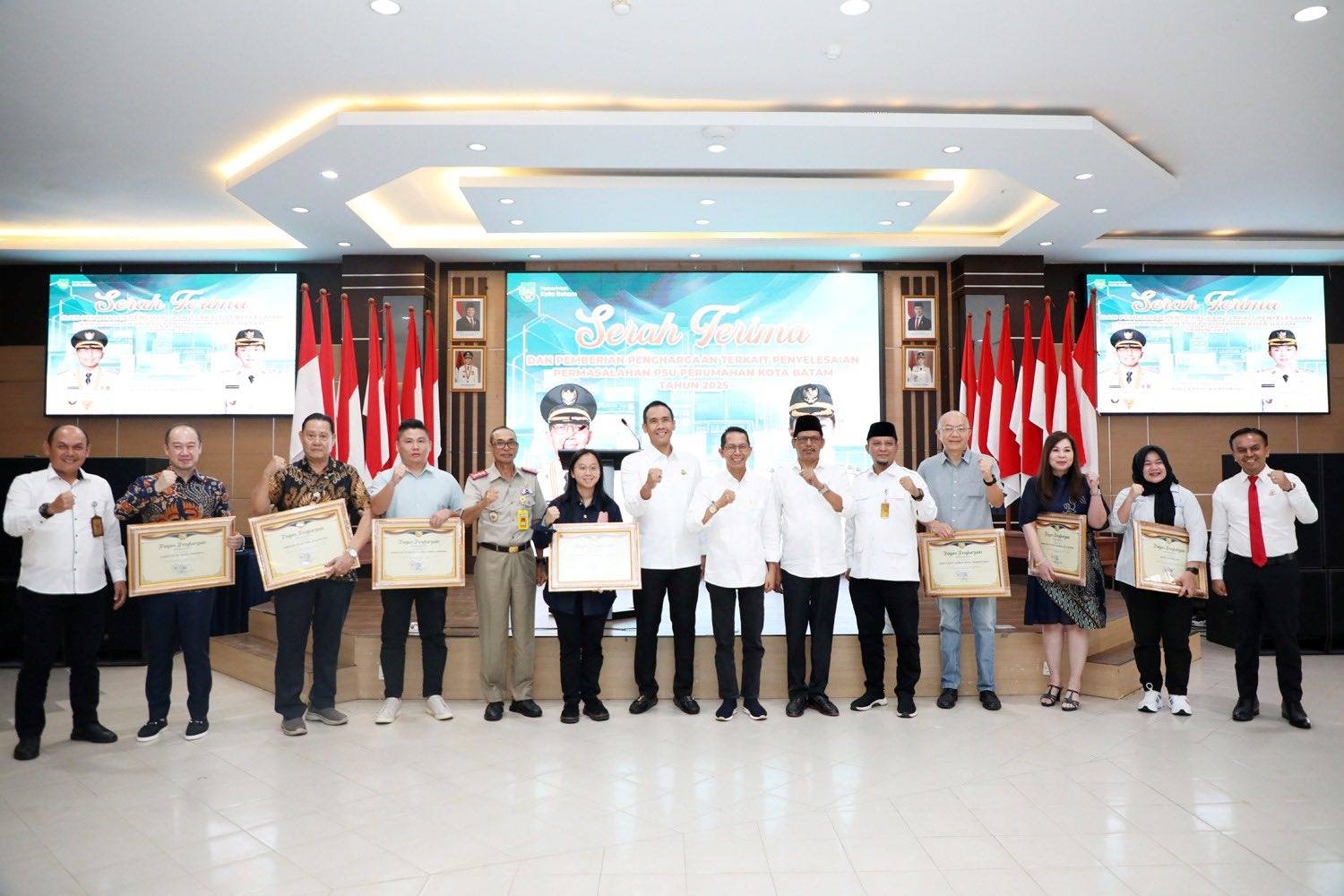 Penghargaan juga diberikan kepada 12 pengembang perumahan atas kontribusi mereka dalam penyelesaian masalah Prasarana, Sarana, dan Utilitas Umum (PSU) di Kota Batam tahun 2025.