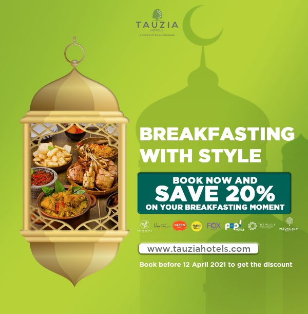 Dijelaskan Irene Janti, promo early bird ini tersedia untuk periode booking sampai dengan 12 April 2021. Jika melewatkan promo early bird ini, tersedia pula promo ‘Buy 5 Get 1 Free’ untuk setiap pembelian menu berbuka puasa. Promo ini tersedia mulai tanggal 13 April sampai 12 Mei 2021. Pemesanan dapat dilakukan melalui website tauziahotels.com, atau reservasi langsung melalui telepon, email dan whatsapp business ke hotel pilihan tamu.