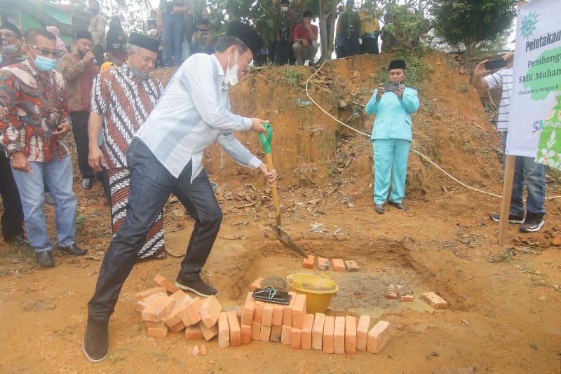 Wali Kota Batam, HM Rudi meletakkan batu pertama pembangunan SMK Muhammadiyah Batam di Kabil.