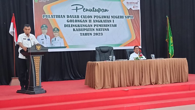 Bupati Natuna, Wan Siswandi secara resmi menutup Pelatihan Dasar Calon Pegawai Negeri Sipil Golongan II Angkatan I di lingkungan Pemerintah Kabupaten Natuna Tahun 2023.