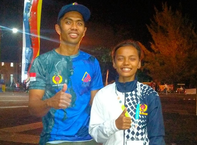 Atlet Panjat Tebing Batam, Febri Morist Syahputra Rumampuk dan Ila Isnawati Tanjung yang berhasil meraih medali Emas di Porprov Kepri V di Bintan.