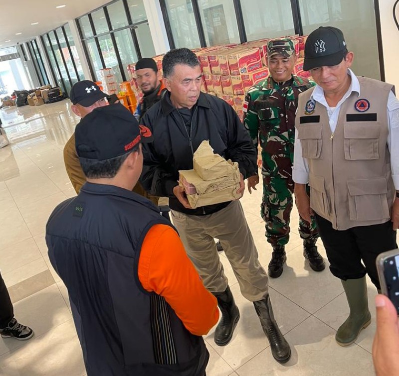 Sementara dari BNPB sendiri menyerahkan bantuan berupa 5 unit motor dan 1 unit mobil dapur.