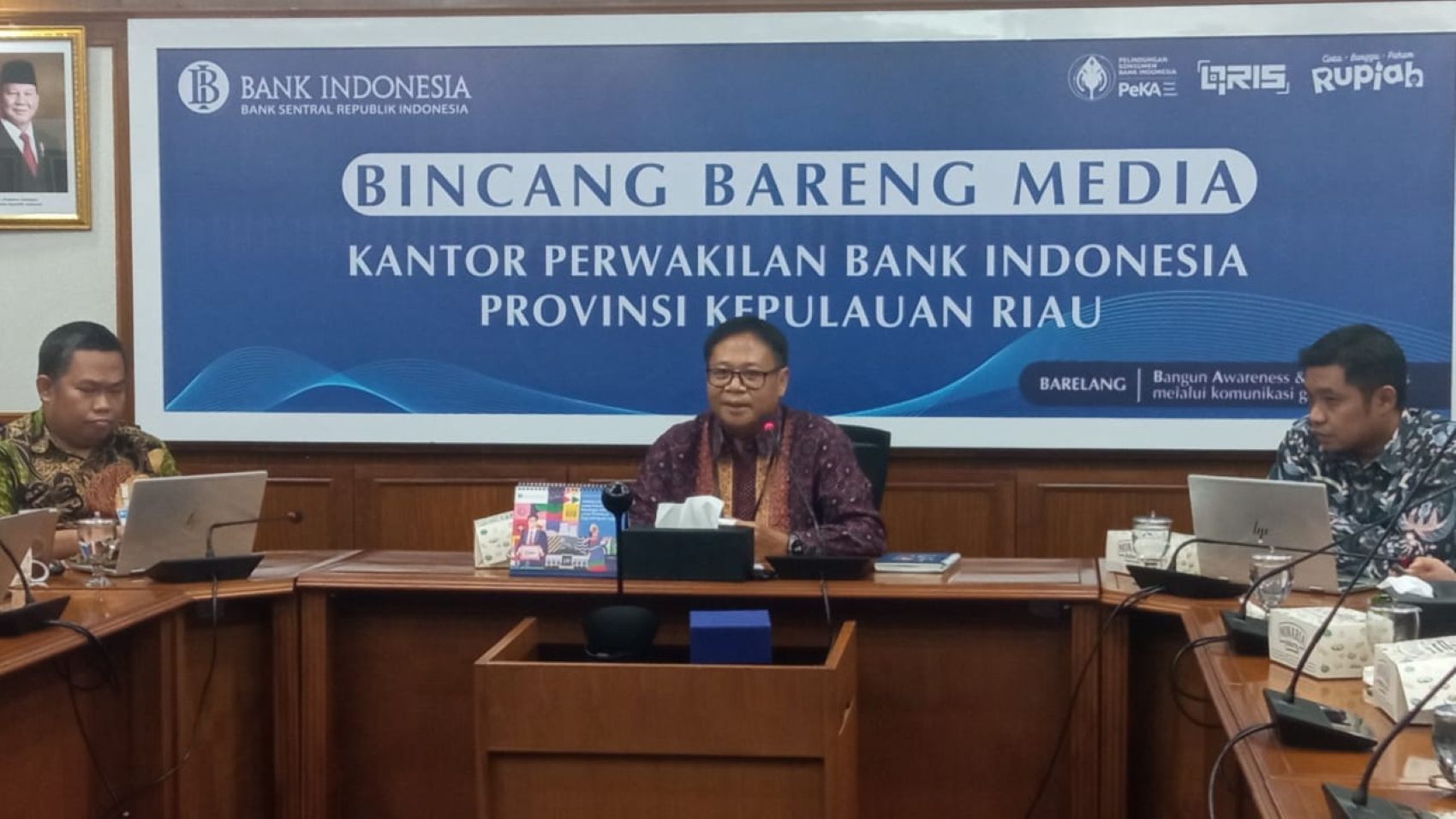 Kepala Perwakilan BI Kepri, Rony Widijarto, memaparkan perkembangan ekonomi terbaru di Kepri dalam Bincang Bareng Media (BBM) pada Selasa (8/7/2025) sore di Ruang Raja Ali Haji, Lantai II Kantor BI Kepri, Batam.