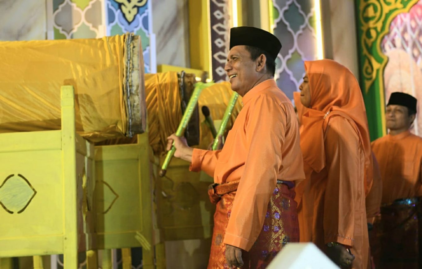 Gubernur Kepri, Ansar Ahmad memukul beduk tanda dibukanya STQH Kepri X tahun 2023 di Kabupaten Karimun.