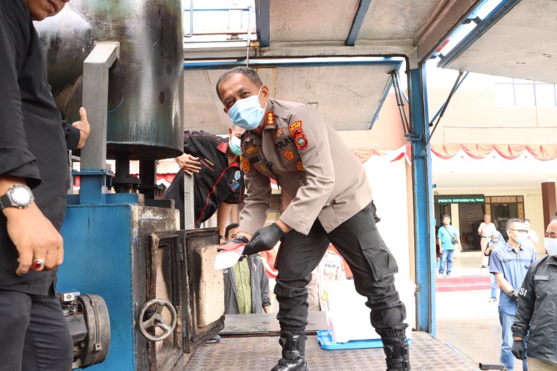 Sesuai prosedur, sebagian kecil dari barang bukti telah disisihkan untuk keperluan pengujian laboratorium, sementara sisanya dimusnahkan. Proses pemusnahan dilakukan dengan cara pembakaran secara terbuka.