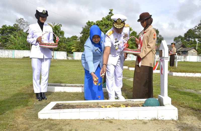 Danlantamal IV Batam, Laksamana Pertama TNI Tjatur Soniarto melakukan tabur bunga di salah satu makam pahlawan di TMP Pusara Bhakti Bulan Gebang Batam.