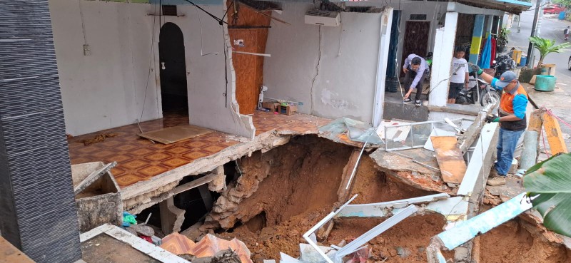 Pantauan di lokasi kontur tanah di lokasi tersebut berbukit. Sehingga rawan longsor. Kondisi rumah yang rusak parah berada tepat di sebelah balai pertemuan. Selain tempat kediaman, rumah tersebut juga dijadikan tempat usaha penjual ayam penyet.
