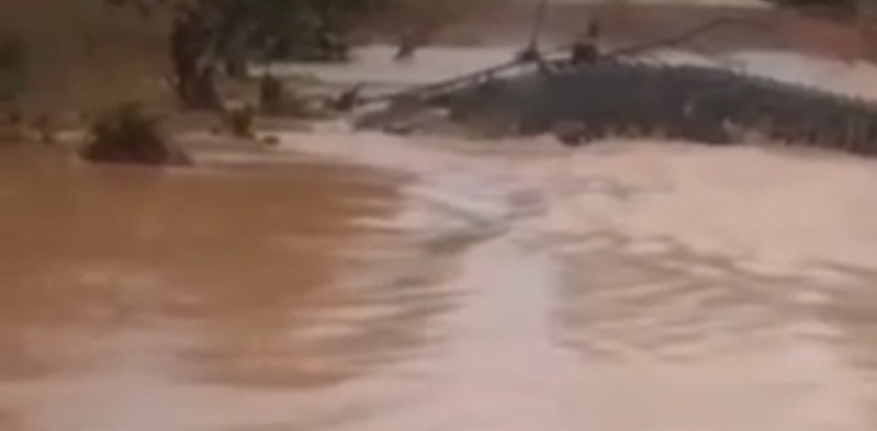 “Kandang PJK tadi malam jebol ges, diguyur hujan, pagar dan temboknya roboh ges!,” kata pengambil video yang memperlihatkan seekor buaya berukuran besar di tengah jalan. (ara)