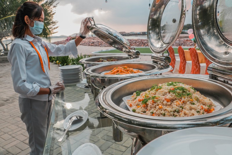 Untuk tamu yang datang, wajib diberlakukan protokol kesehatan sesuai yang telah ditetapkan oleh pemerintah seperti pengecekan suhu tubuh sebelum masuk ke resort, menggunakan masker, disediakan hand sanitizer, dan menjaga jarak antar tamu.