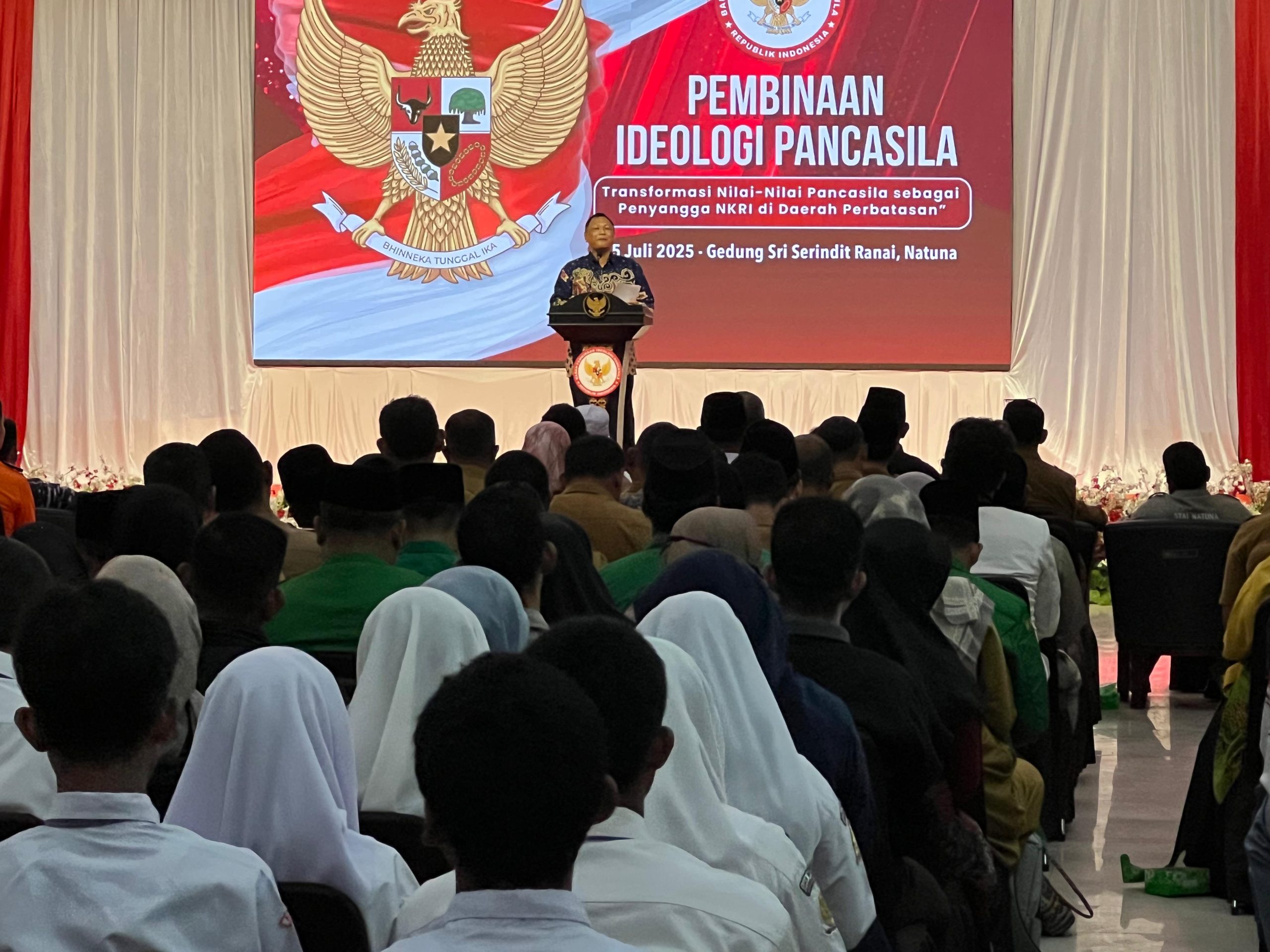 Ariranews.com, Natuna — Pemerintah Kabupaten Natuna bersama Badan Pembinaan Ideologi Pancasila (BPIP) Republik Indonesia menggelar Seminar Pembinaan Ideologi Pancasila dengan tema “Transformasi Nilai-Nilai Pancasila sebagai Penyangga NKRI di Daerah Perbatasan”, Selasa (15/7/2025), di Gedung Sri Serindit, Ranai.