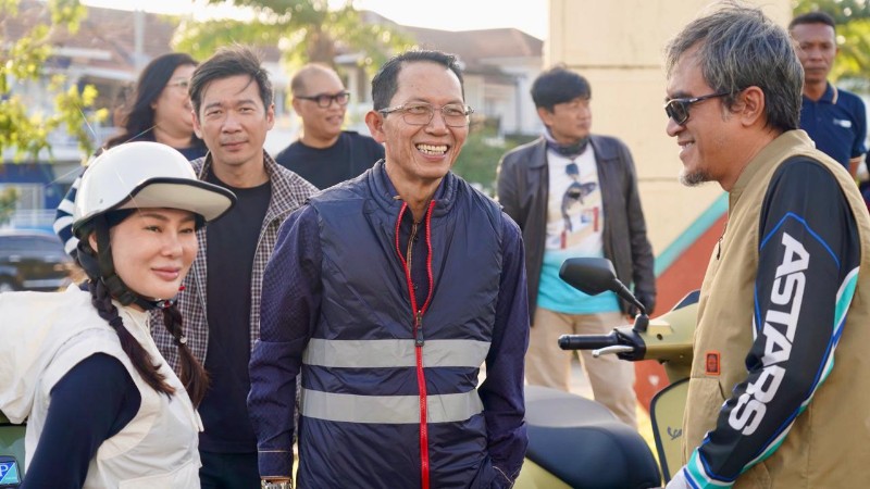 Kepala BP Batam, Amsakar Achmad dan Wakil Kepala BP Batam, Li Claudia Chandra melakukan riding bersama Komunitas Vespa Batam pada Sabtu (14/3/2026).