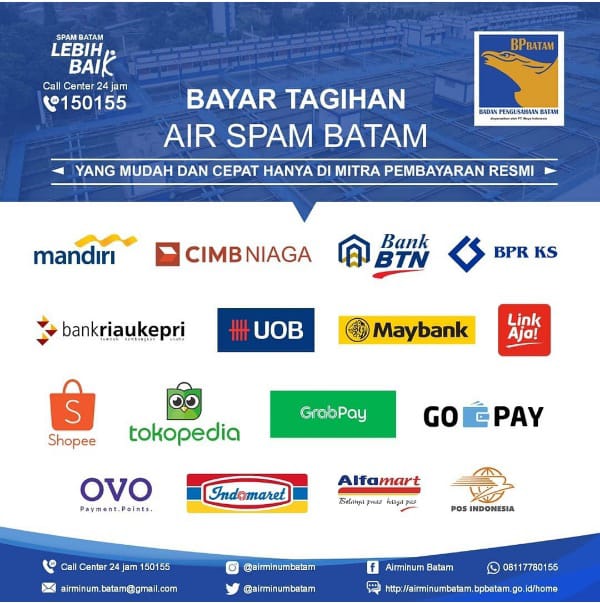 Astriena Veracia, Corporate Communication Moya Indonesia( SPAM Batam) mengatakan untuk pembayaran tagihan air bersih, mayarakat kota Batam dapat melakukan pembayaran di berbagai mitra bayar resmi SPAM Batam. Bahkan sudah menjangkau ke pemukiman masyarakat.