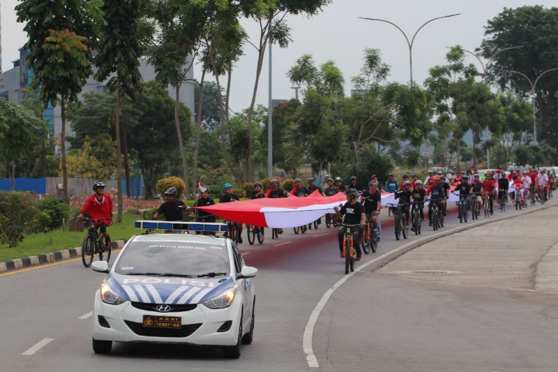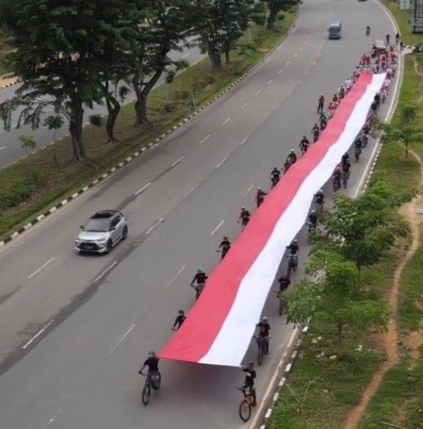 Pesepeda Batam Bawa Merah Putih Sepanjang 78 Meter