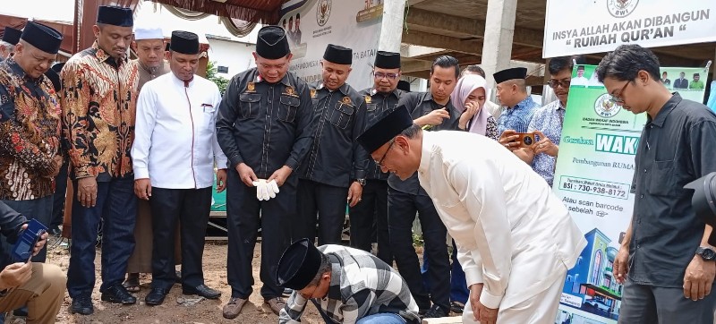 Pembangunan Wakaf Rumah Qur’an di tanah wakaf Badan Wakaf Indonesia (BWI) Kota Batam yang berasal dari wakif Samsul Paloh di Jln. Mc.Dermot No. 2 Tiban Indah, Kecamatan Sekupang, mulai dilaksanakan dengan pelaksanaan peletakan baru pertama oleh Wali Kota Batam, Amsakar Achmad, Sabtu (22/11/2025) siang.