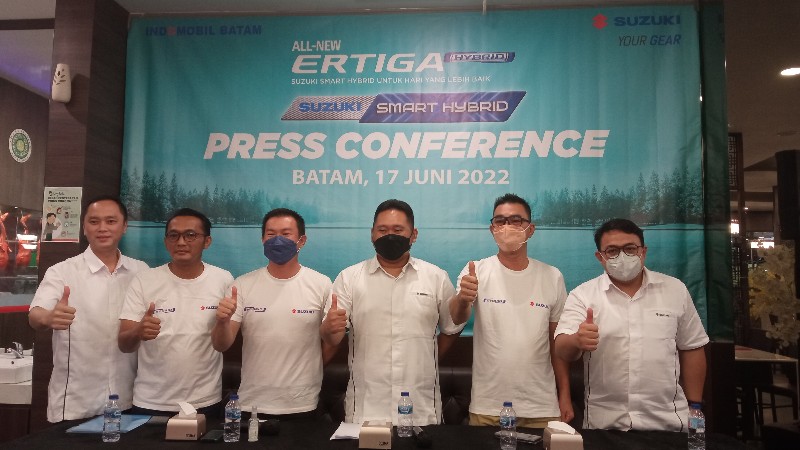 Jajaran manajemen PT SIS dan Indomobil Batam saat konferensi pers sebelum secara resmi meluncurkan New Ertiga Hybrid di Batam.