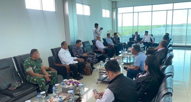 Penyambutan berlangsung di VIP Room Bandara Lanud Raden Sadjad, Ranai. Rombongan dipimpin langsung oleh Asisten Deputi Koordinasi Doktrin dan Strategi Pertahanan Kemenko Polhukam, Brigjen TNI Purwito, bersama sejumlah pejabat tinggi dari berbagai instansi strategis di lingkungan kementerian.