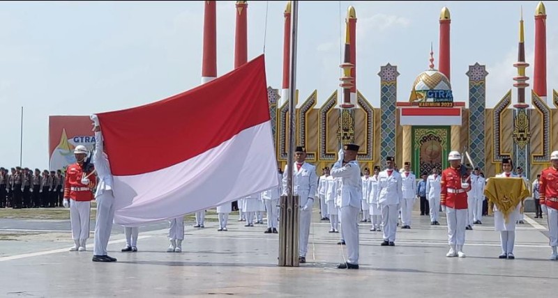Bupati Karimun, Aunur Rafiq menjadi inspektur upacara peringatan detik-detik Proklamasi Kemerdekaan Republik Indonesia yang ke-78 tahun 2023.