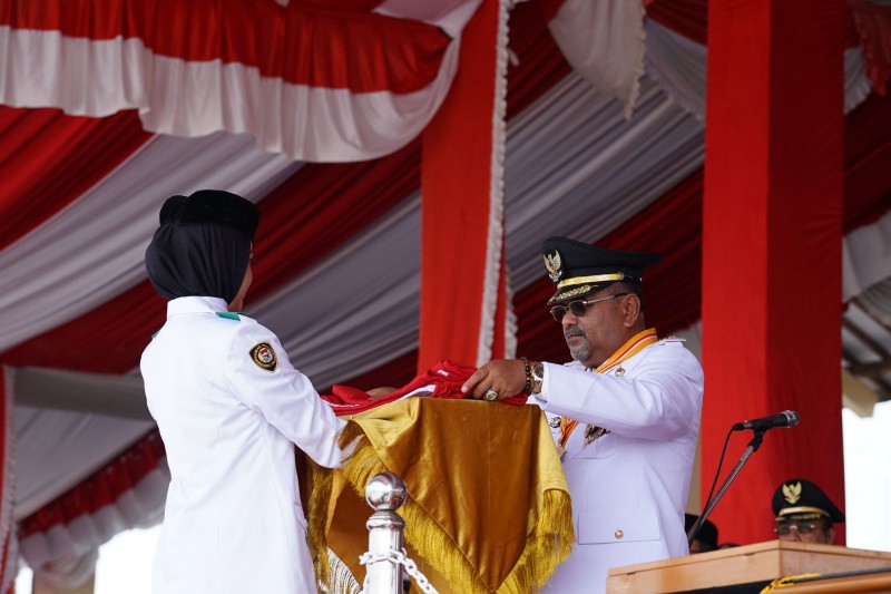 Bupati Karimun, Aunur Rafiq menjadi inspektur upacara peringatan detik-detik Proklamasi Kemerdekaan Republik Indonesia yang ke-78 tahun 2023.