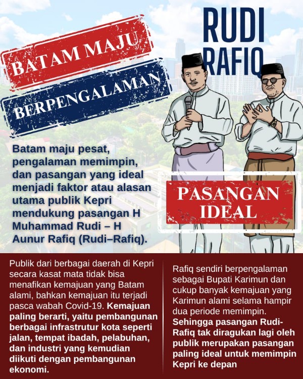 Rafiq sendiri berpengalaman sebagai Bupati Karimun dan cukup banyak kemajuan yang Karimun alami selama hampir dua periode memimpin. Sehingga pasangan Rudi-Rafiq tak diragukan lagi oleh publik merupakan pasangan paling ideal untuk memimpin Kepri ke depan. (hmd)