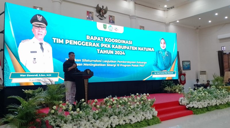 Bupati Natuna, Wan Siswandi, membuka secara resmi Rapat Koordinasi TP-PKK Kabupaten Natuna Tahun 2024, yang diadakan di Gedung Sri Srindit, Ranai, pada Jumat (20/09).