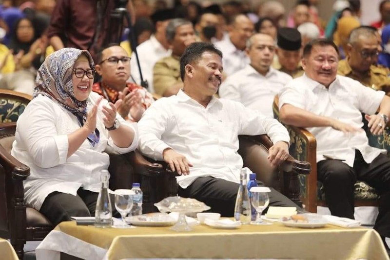 FOKUS KOLABORASI: Wakil Gubernur Kepulauan Riau Hj Marlin Agustina, bersama Wali Kota Batam/Kepala Badan Pengusahaan Batam H Muhammad Rudi (HMR), di sela menghadiri Pembukaan Musrenbang RKPD Kota Batam, Tahun 2023, di Hotel Radison, Batam, Sukajadi, Senin (20/3/2023) pagi.