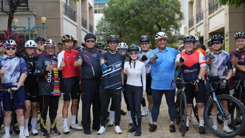 Kepala BP Batam, Amsakar Achmad, dan Wakil Kepala BP Batam, Li Claudia Chandra, mengikuti kegiatan Gowes Santai bersama Polda Kepri, Minggu (20/7/2025).