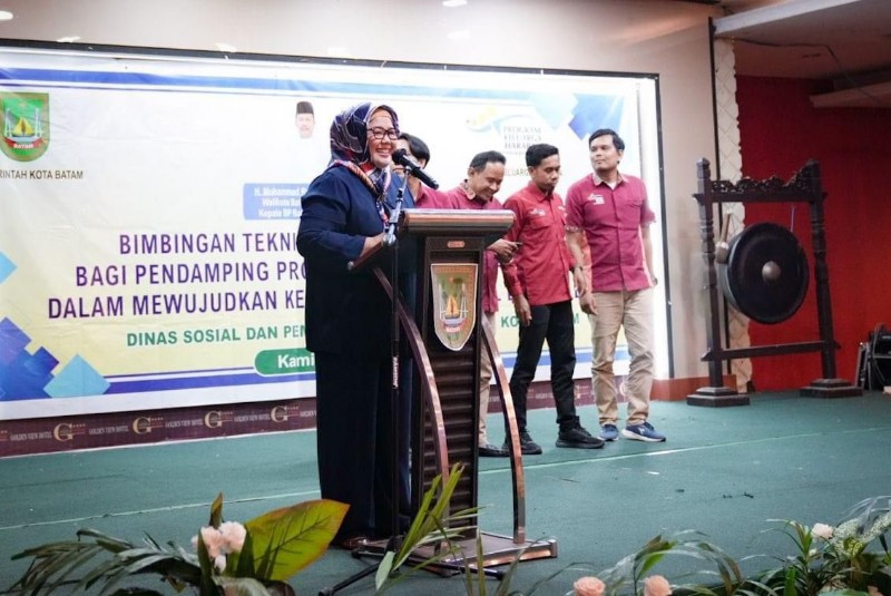 Wakil Gubernur Kepulauan Riau Hj Marlin Agustina, mendampingi Wali Kota Batam Muhammad Rudi (HMR), membuka bimbingan teknis (Bimtek) sumber daya manusia Program Keluarga Harapan (PKH) di Hotel Golden View Bengkong, Kamis (22/6/2023).