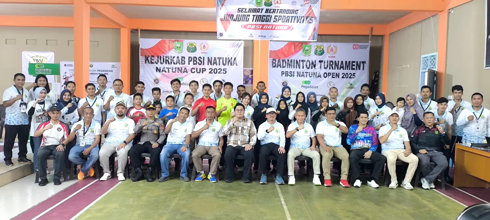 Kejurkab PBSI Natuna 2025 turut mendapat dukungan dari berbagai pihak, termasuk Pemerintah Daerah, Guspurla, Pegadaian, Pertamina, Pelni Logistik, dan BPJS.