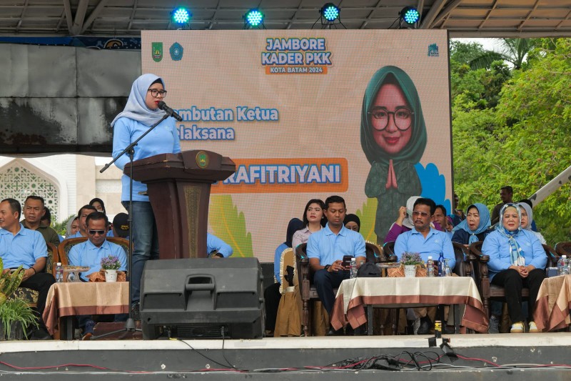 Ketua Panitia Jambore PKK Tingkat Kota Batam 2024, Rani Rafitriyani saat menyampaikan laporan.