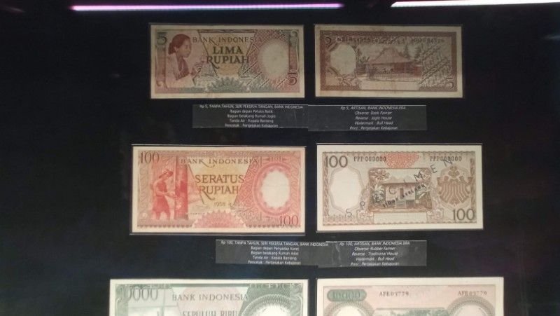 Mata uang Rupiah yang pernah digunakan dan tersimpan di Museum Bank Indonesia (MUBI) Jakarta.