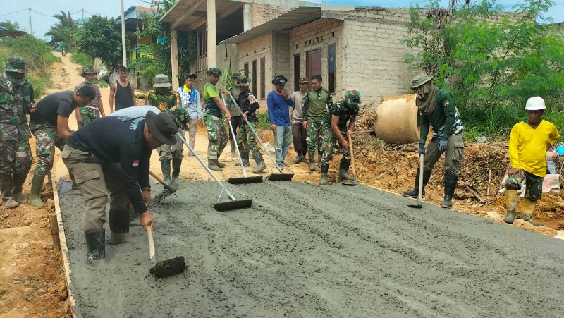 Personel TMMD di Kavling Seraya, Sambau, Batam, terus bekerja menyelesaikan pekerjaan fisik melakukan semenisasi jalan.