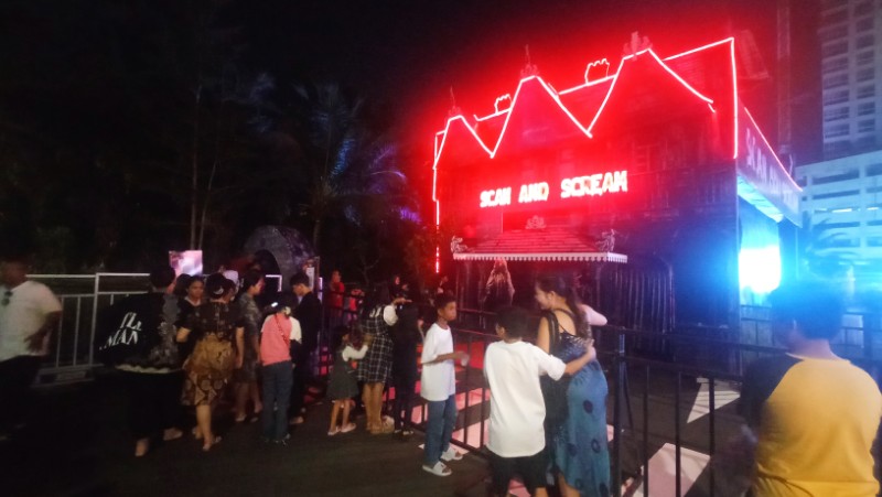 Di antara yang manarik perhatian pengunjung di malam pembukaan, Jumat (25/7/2025) malam, yakni wahana rumah hantu. Untuk masuk wahana ini cukup murah, hanya Rp 20.