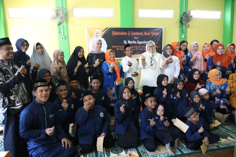 Anak-anak yatim piatu menyambut bahagia kehadiran Ketua Umum Persatuan Istri Karyawan Badan Pengusahaan Batam (Pikori BP Batam) Hj Marlin Agustina, di panti asuhan tempat mereka bernaung.