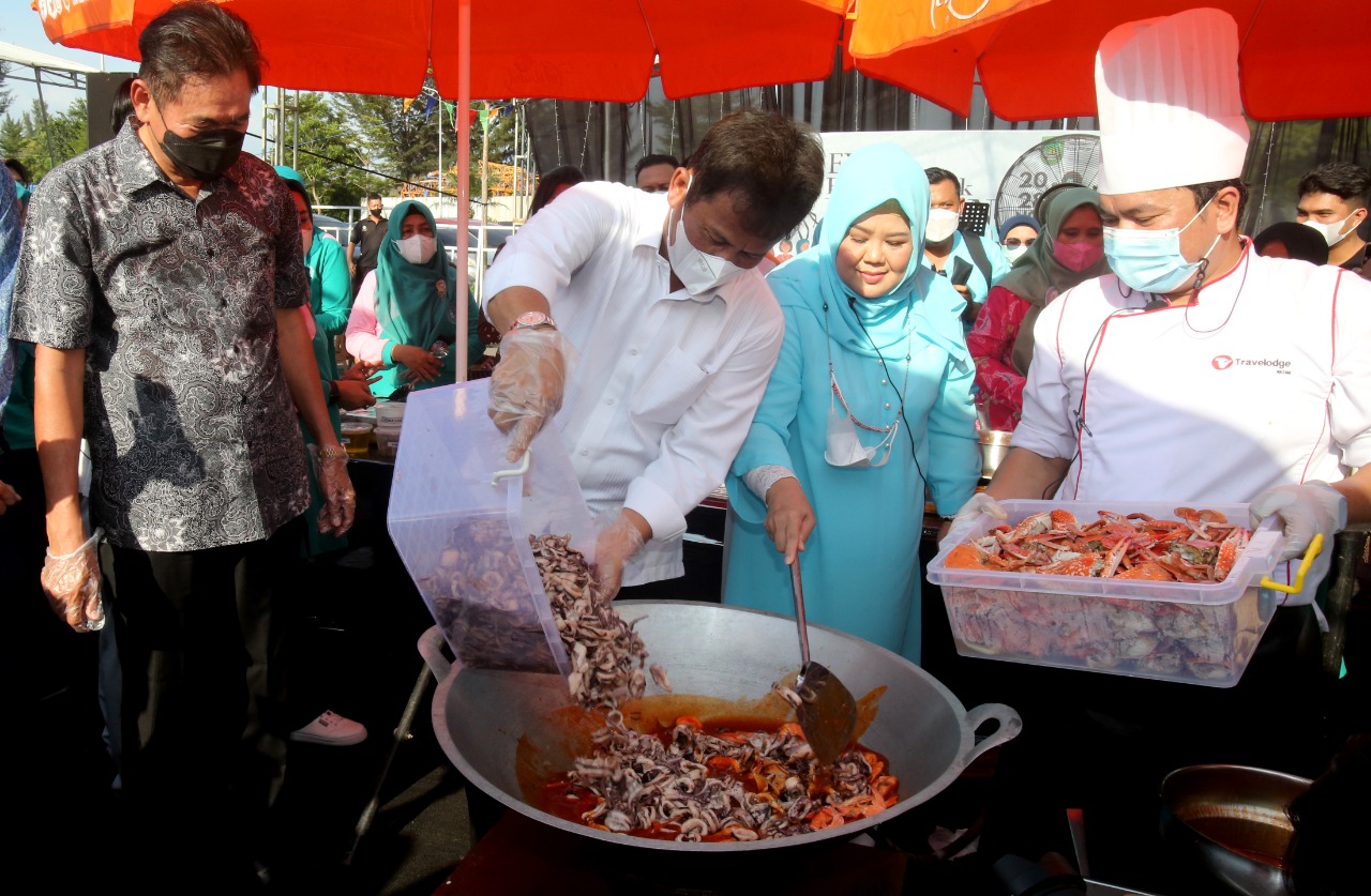 Menariknya, Wali Kota Batam Muhammad Rudi juga ikut memasak. Tidak hanya itu, ia juga menghidangkannya langsung dan bersama masyarakat menikmati masakan tersebut.