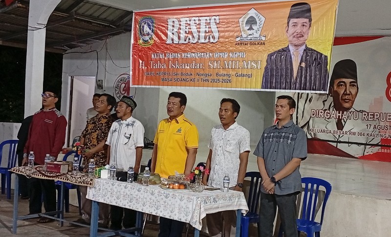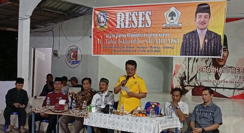 Anggota DPRD Kepulauan Riau, H. Taba Iskandar, SH, MH, MSi, menggelar kegiatan reses di RW 04 Kavling Sambau, Kelurahan Sambau, Kecamatan Nongsa, Kota Batam, Selasa (28/4/2026) malam. Kehadiran Anggota Fraksi Golkar DPRD Kepri, tersebut disambut antusias ratusan warga yang memadati lokasi kegiatan.