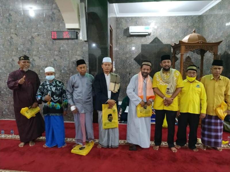 Selanjutnya di Masjid At Taqwa, Kecamatan Telok Sebong, Bintan, hadir Ketua DPD Golkar Bintan, Fiven Sumanti bersama sejumlah pengurus.
