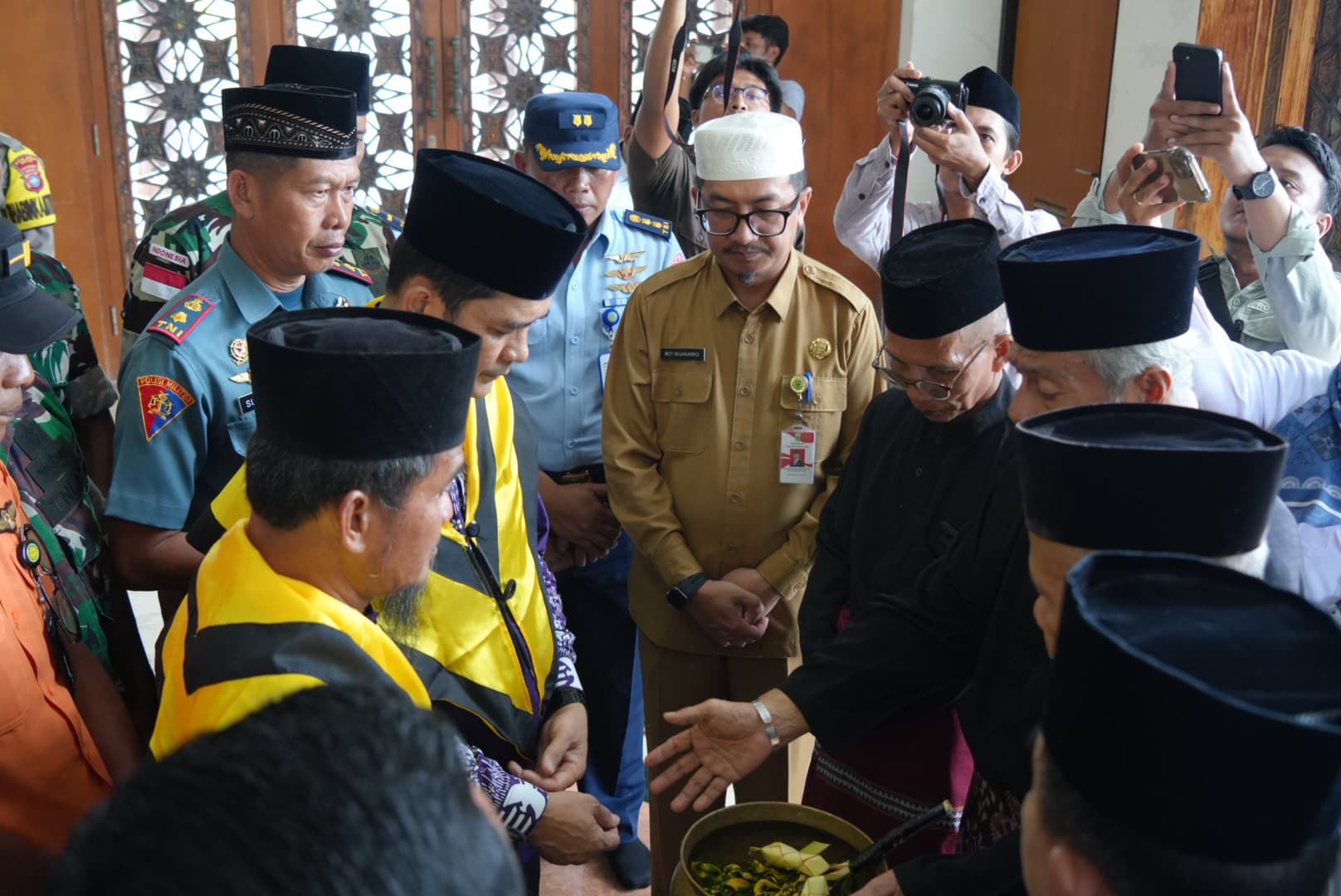 Sekda Natuna, saat menghadiri cara tepung tawar dan doa bersama dalam pelepasan jamah haji.