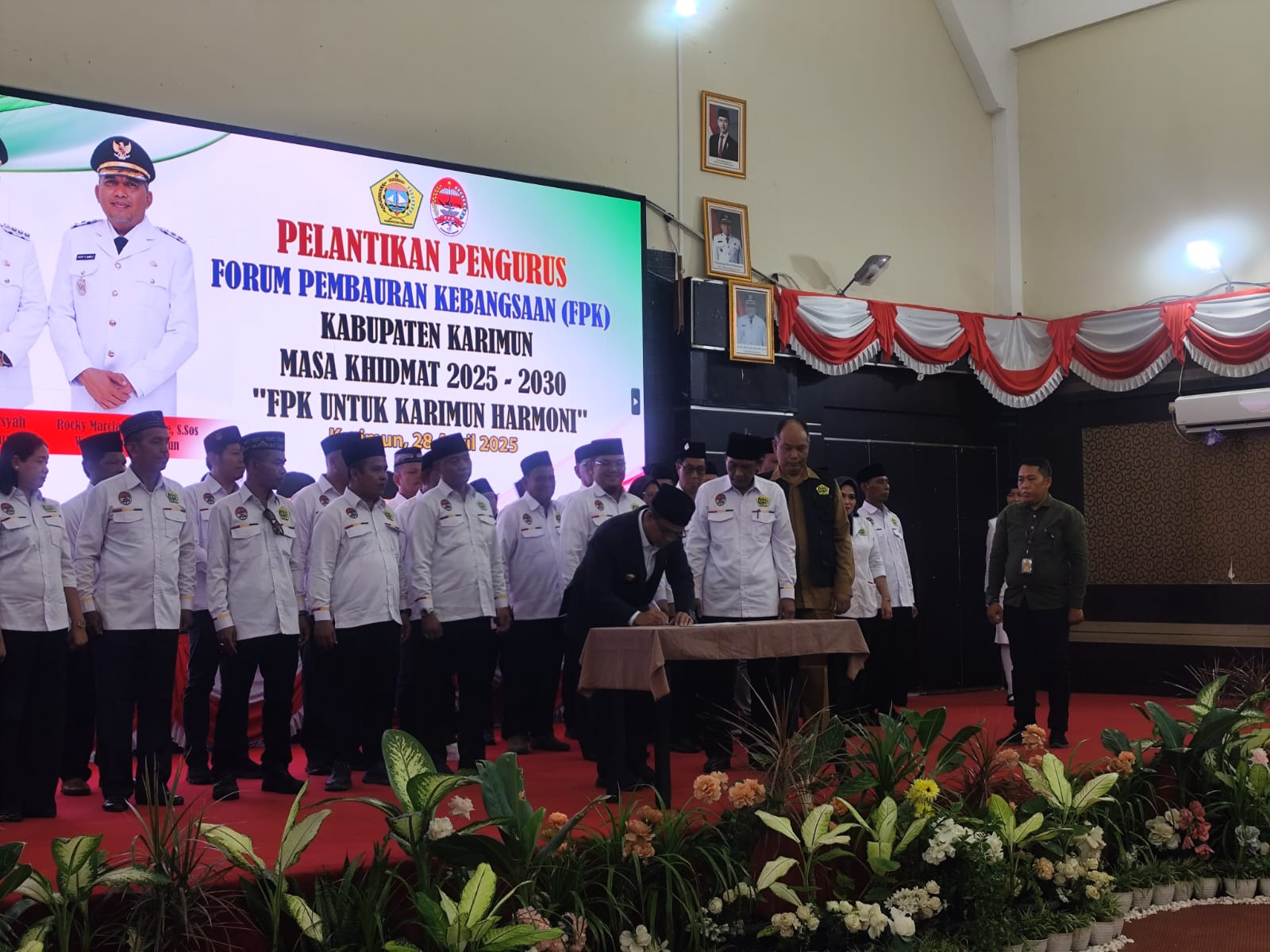 Karimun, ariranews.com– Pengurus Forum Pembauran Kebangsaan (FPK) Kabupaten Karimun periode 2025-2030 resmi dilantik di Gedung Nasional Karimun, Selasa (28/4/2026). Pelantikan dipimpin langsung oleh Bupati Karimun, Iskandarsyah, yang menegaskan pentingnya menjaga harmoni sosial sebagai fondasi utama percepatan investasi dan pembangunan daerah.