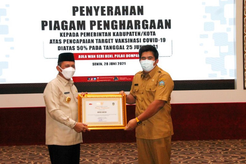 “Tanpa kinerja serius dari setiap kabupaten dan kota untuk mengejar target vaksinasi ini, tentu hal ini tidak dapat tercapai, jadi saya ucapkan terima kasih banyak,” kata Gubernur Ansar saat memberikan piagam penghargaan tersebut di Aula Wan Seri Beni, Dompak, Tanjungpinang, Senin (28/6).