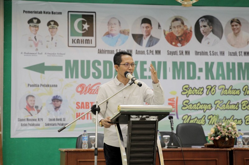 Amsakar terpilih aklamasi dalam forum Musyawarah Daerah (Musda) VI KAHMI Batam yang berlangsung di Hotel PIH Batam Center, Sabtu (28/8/2021).