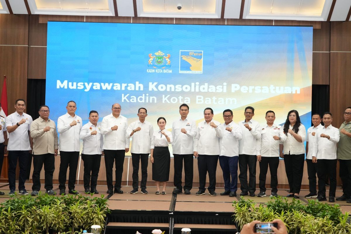 Kepala Badan Pengusahaan (BP) Batam, Amsakar Achmad, dan Wakil Kepala BP Batam, Li Claudia Chandra mengapresiasi terselenggaranya Musyawarah Konsolidasi Persatuan Kamar Dagang dan Industri (Kadin) Batam di Balairungsari, Gedung Bida Utama BP Batam, Batam Centre, Kamis (30/4/2026).